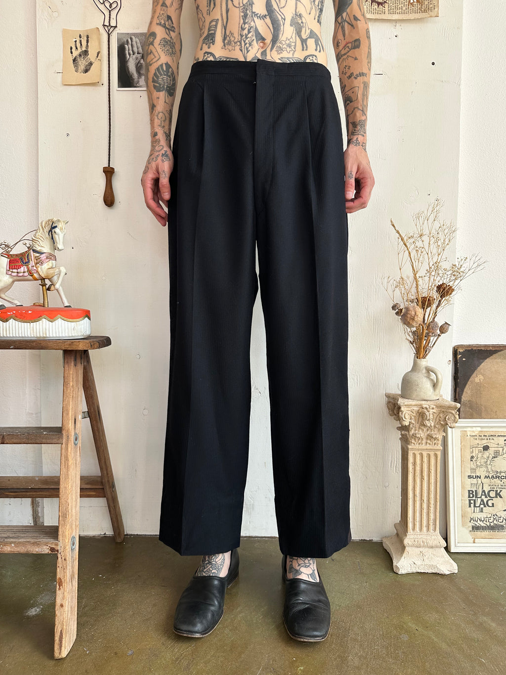 1960s Baggy Faint Pinstripe Tuxedo Trousers (32/28)