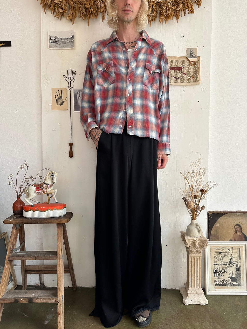 1970s Paper Thin Well Worn Plaid Western Shirt (Boxy XL)