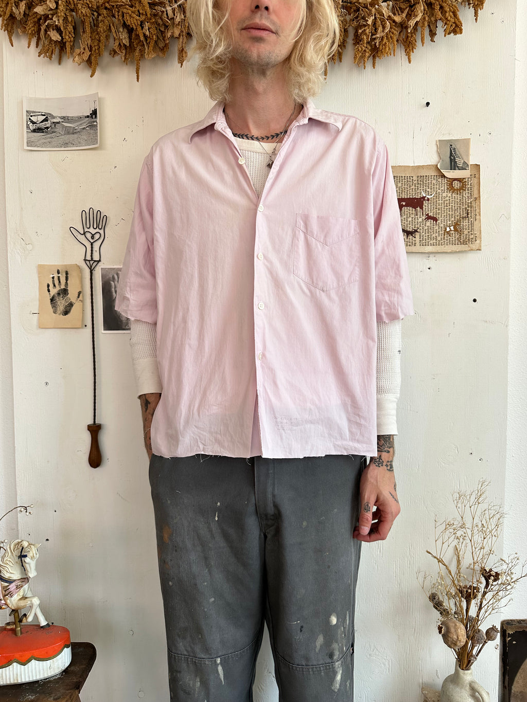 1970s Well Worn Cotton Poplin Chopped Dress Shirt (Boxy L/XL)